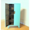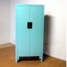 Elegant, shallow, this tall and shallow depth cabinet, with two doors is painted a in blue colour.