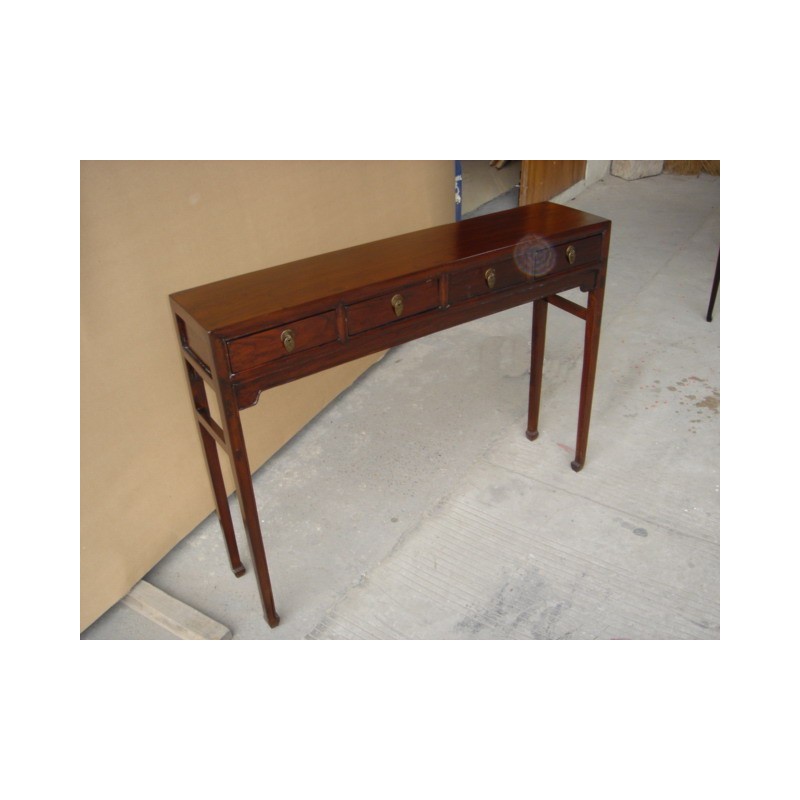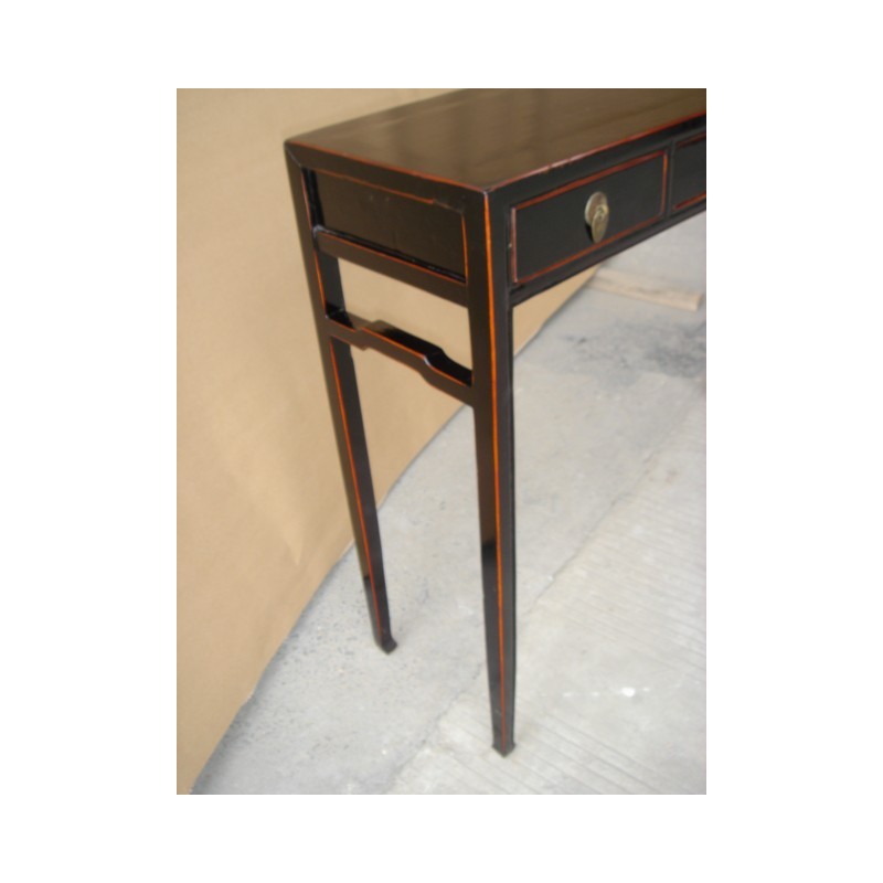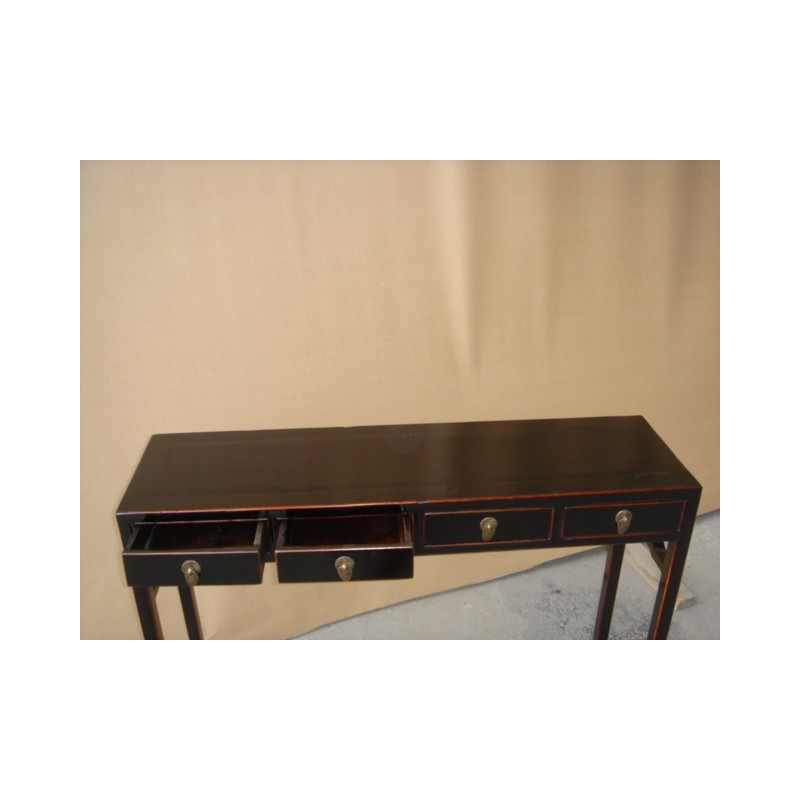 This four drawers console table is black lacquered. Its legs look like horseshoes, so this style is called 'Ma ti tui' in Chinese.