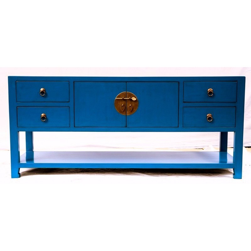 This sleek and functional low cabinet - two doors, five drawers - is available in four luminous tones (depending on stock) inspired by the sixties :