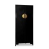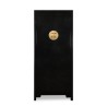 Elegant, shallow, this superbly black lacquered, high and narrow cabinet has two doors and two drawers.