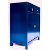 Petit meuble rouge peu profond - deux portes, deux tiroirs. Subtile bleu-nuit inspiré des années soixante.
